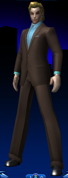 | Dancing Suit | My Sunday night SG decided to expand a bit into Triumph, and since Mindfire.EXE was still in Praetoria and people wanted to go "traditional hero" this time, I dove into my file of character ideas and grabbed this one. I'd actually tried a Blaster version of it on Test a few days before (Elec/Elec) with a different color shirt and no neck chain, just to test out Test. Kinetic Melee really goes with disco dancing. | |||||