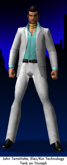 | John TerraVolta | Hero | Technology Tanker | Electric Armor | Kinetic Melee | Leaping | |