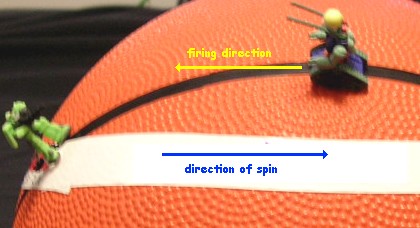 to get a great circle path onto where his foe now sits. Since he's firing in