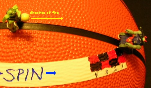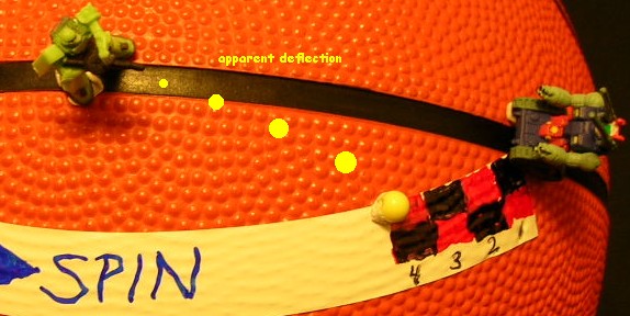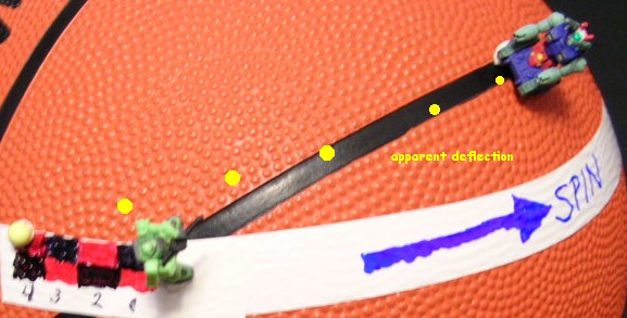 the projectile seems to have curved off to the right...or rather, it hasn't