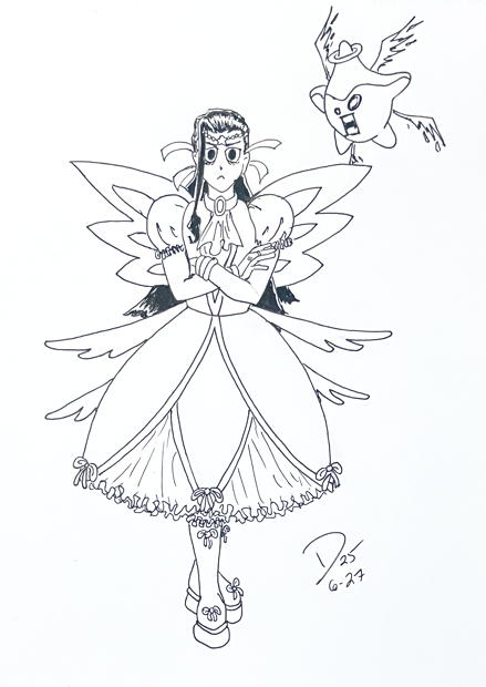 Akiko, sort of. Ink and markers, Spuckler head in lower right drawn