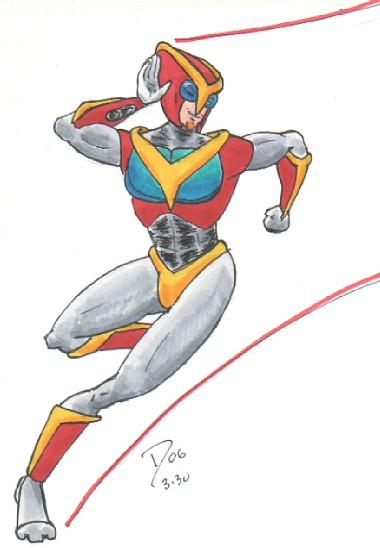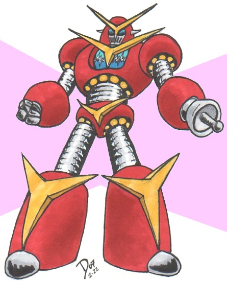 Go Nagai-style Super Robot. Purple background splash added digitally. Inks before some tweaking with a new pen. 2/27/07