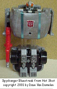 Years of combat on Earth have done little to dull Bluestreak's dislike of warfare, but Autobot tacticians have learned to use his skills in roles that increase his effectiveness, such as long-range support and bombardment. However, the incessant chatter that Bluestreak uses to cover his nervousness has only gotten worse, even as his combat steadiness has improved. Recently upgraded to a new model of his original Earth form, he can now reach ground speeds of 300 mph with much improved fuel efficiency. In robot mode he can run so fast that his legs are a blur, at speeds up to 80 mph. His weapons have been combined into the Bomb Cannon, which fires guided spheres of bright cyan plasma that can detonate either on contact, time delay, or remote command. Their range is over fifty miles, and they can travel at Mach 2. For those rare cases where close combat is necessary, the Bomb Cannon can emit streams of electrically charged plasma that detonate on contact with a solid object. Improved optics and the ability to see through the eyes of willing allies nearer to the action make him an excellent artillerist, capable of moving rapidly around the battlefield without ever entering it.