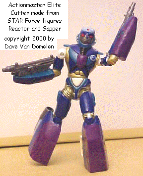 The base figure I used was a S.T.A.R. Corps action figure, a knockoff (well, licensed) GIJoe space figure sold in blister packs at places like Wal-Mart and K-Mart. This time it was the half-and-half figure formed from the parts of Reactor and Sapper that I didn't use in making Alabaster.