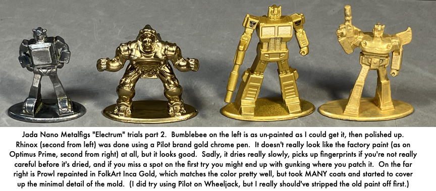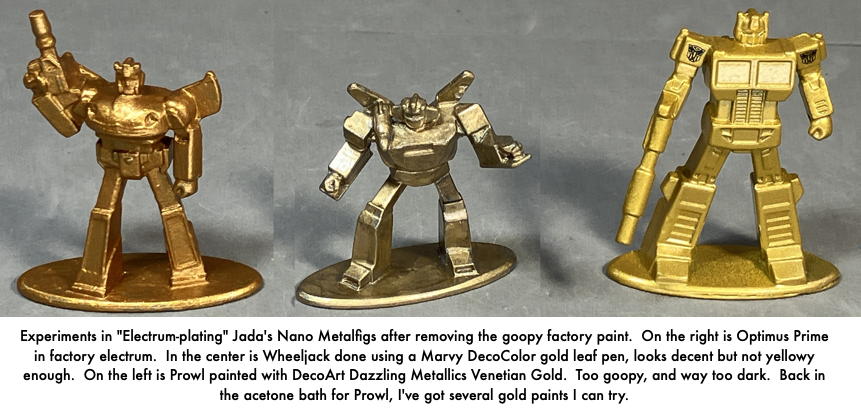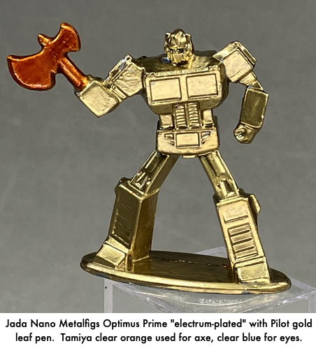 non-Pilot gold leaf marker Wheeljack (too dull), Jada factory paint Optimus