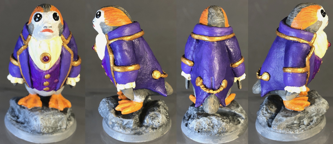 I started with a 4cm tall penguin figure I had in my parts bin. I don't remember where I got it, it