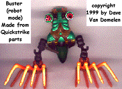 Because of the large number of stiff joints in the toy, I decided against major color scheme alteration, and tried to make added parts blend in to the original colors. The result looks like someone cloned Quickstrike and then put both in a blender. Which, really, is what I did. Heh.