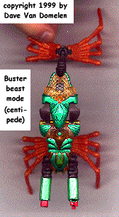 While Buster and Hydra were able to merge into a powerful skyfortress in the old days, that experience was more like being pilot and gunner of an airplane. The fusion of minds that the Quadragon gestalt brings is unfamiliar to both of them, and neither is totally comfortable with the idea that they cease to exist as individuals. Quadragon is more of a third entity who is slowly learning what it is to be an individual, and wants to savor life on his own. As a result, Buster and Hydra are reluctant to form Quadragon, and Quadragon is reluctant to split apart. Still, while personality matters may need some work, there's no disputing that Quadragon is a powerful addition to the ranks of the Transmythic Predacons (or Terrorcons). Lethal in close combat thanks to four snapping jaws, deadly at range due to the extra power surging through his Busterguns, and impossible to get close to because of the sixteen energized legs dancing in a cloud of pain around his torso. While deceptively slender, Quadragon is easily one of the most powerful Predacons.